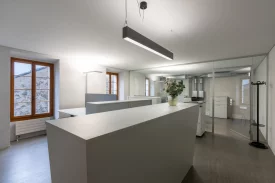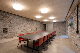 Das Gmeihüs, Baujahr 1812, wurde 1990 zum Verwaltungsgebäude umgebaut. Die Raumaufteilung ist den heutigen Bedürfnissen und die Zugänglichkeit mit dem Einbau eines Personenliftes angepasst. Im Erdgeschoss, wo sich der neue Gemeindesaal befindet, wurden die Natursteinwände vom Putz befreit und Sicht belassen.