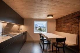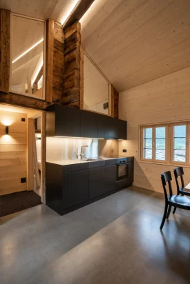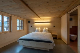 Im Lijisch-/Brägihüs, Baujahr 1462, seit 25 Jahren nicht mehr bewohnt, war eine Totalsanierung notwendig. Es wurde darauf geachtet, die bestehenden Räumlichkeiten und statischen Strukturen so zu belassen. Im Zwischen- und Obergeschoss entstand eine möblierte 2 Zimmerwohnung. Die Zimmer haben jeweils eine eigene Nasszelle. Mit den Sanierungsmassnahmen wurde der Minergiestandard angestrebt.