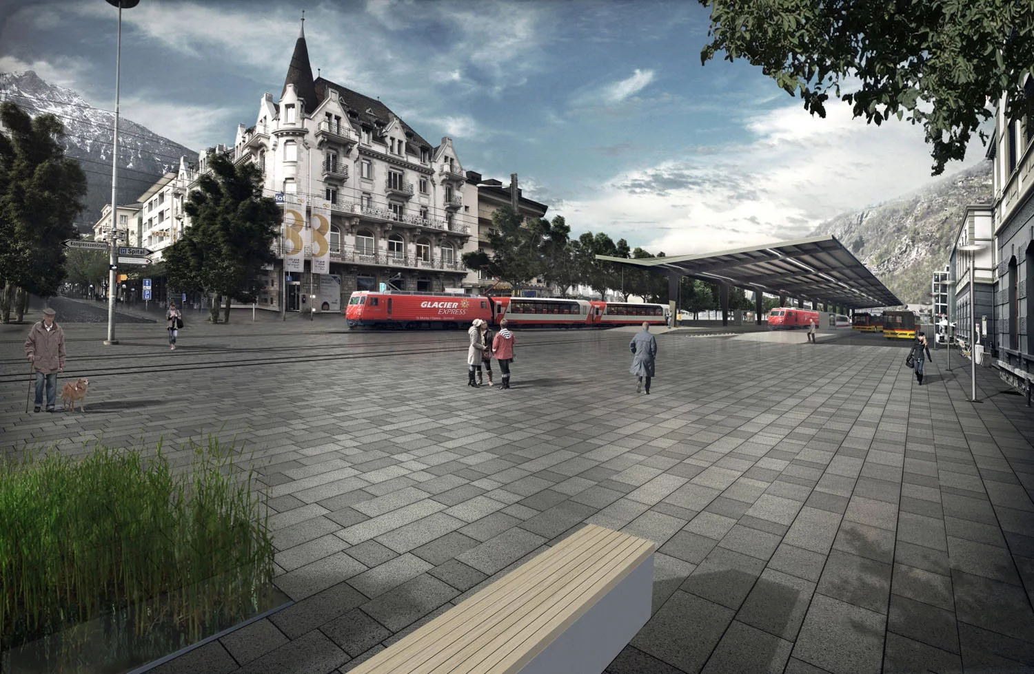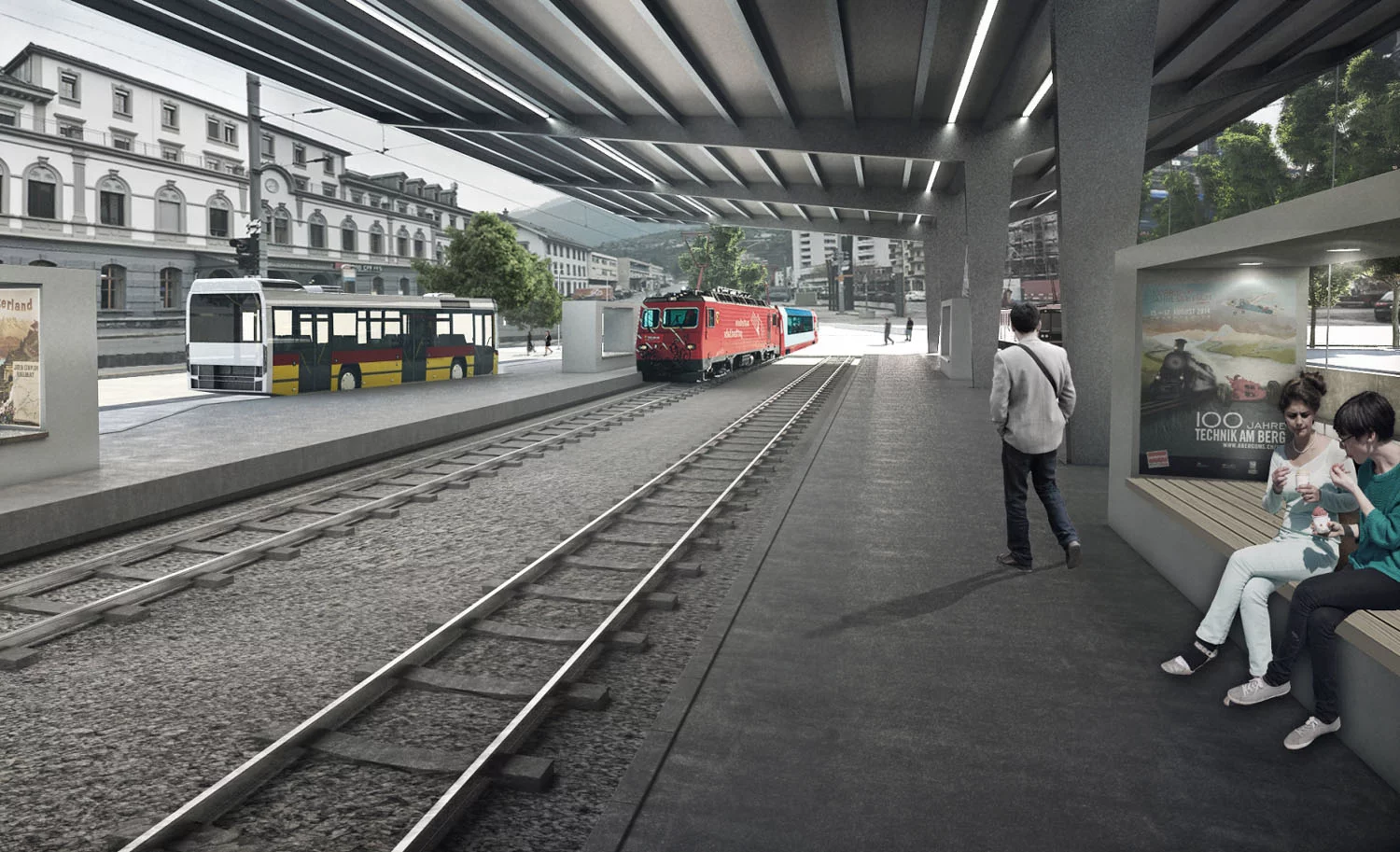 Wettbewerb mit Präqualifikation Bahnhofplatzgestaltung und Perrondächer mgb - Bahn, Zusammenarbeit mit studio w, Felix Wettstein